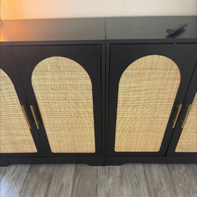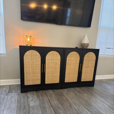 Imagine transforming your living space with a stunning sideboard that blends modern elegance with rustic charm. This versatile buffet cabinet features beautifully crafted rattan doors that add warmth and texture to any room while providing exceptional storage solutions. You'll love how its spacious interior with sturdy fixed shelves keeps your dinnerware, glassware, and household items perfectly organized.