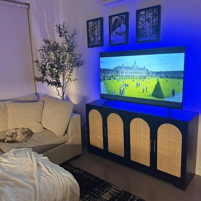Love it so much! Sturdy and sleek, pretty gold hardware. You do need a drill to put together, but to me that’s a good thing. I ordered three for my new living room incase my tv didn’t fit (tv is 65 in). I do think it would look better with a third but didn’t want anything in front of the windows. Would recommend!