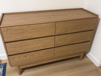 LuxenHome Mid-Century Style Natural Finish Dresser, 6 Drawers, Horizontal Storage, Engineered Wood Brown