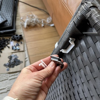 One door magnet was broken off, a piece of the wicker was sliced on the tip and it was incredibly hard to assemble. I’ve put together many pieces before and usually can handle each item but this was very frustrating. Check the measurements, this was bigger than it looks.