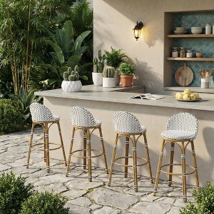 Artisanal Hand-Woven Rattan: Adding to its elegance is the handwoven rattan design. The premium PE rattan is not only visually appealing but also ensures durability and comfort. Featuring a long-lasting woven finish, this style is not only incredibly durable but also provides a versatile appearance. Experience the charm of French bistros in your own backyard with these meticulously hand-woven rattan barstools.