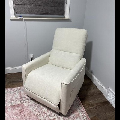 Dyonery Power Swivel Rocker Recliner, Grey Fabric Small Reclining Sofa with USB/Type-C Ports,Glider Nursery Chair with Lumbar Support