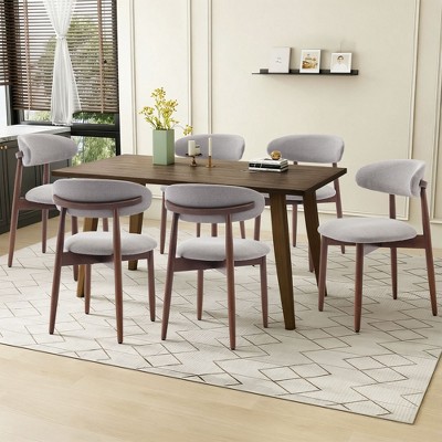 Wooden Dining Chairs Set of 6, Upholstered Dining Room Chairs with Padded Seat, Modern Fabric Dinner Chair for Kitchen, Dining Room, Beige