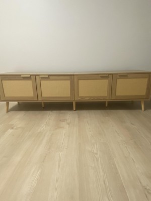 Product Name: 70" TV Stand for TVs up to 80", Natural Media Console with Rattan Doors & Cable Holes, TV Entertainment Center - ModernLuxe