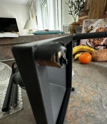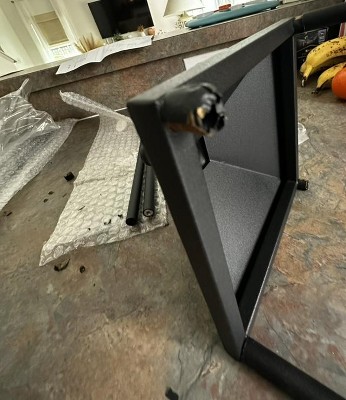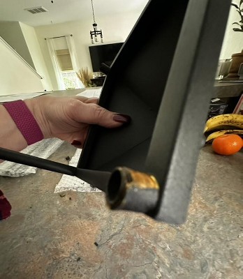 Assembly is difficult. Primarily because of the “black masking tape” around the screws holes. It’s not really tape, more of a paper adhesive that is impossible to get off. And unnecessary. No reason whatsoever to put anything at all around those, unless you’re trying to sign them back that they are rusted. Mine also arrived damaged, the clear plastic around one of the candles is broken. Definitely returning..