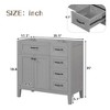 Upgrade your bathroom decor with this 36" bathroom vanity base only, designed for flexible sink customization and modern interiors. This freestanding bathroom cabinet features a clean-lined silhouette with decorative groove detailing and hardware for timeless visual appeal. Built with a reinforced solid wood frame and durable wood panels, it offers enhanced stability, moisture resistance, and long-term everyday performance. The spacious enclosed cabinet and drawers provide practical bathroom storage for towels, toiletries, and essentials while keeping surfaces clutter-free. Ideal for modern, transitional, and contemporary decor, this vanity base is perfect for remodels, master bathrooms, and guest baths.