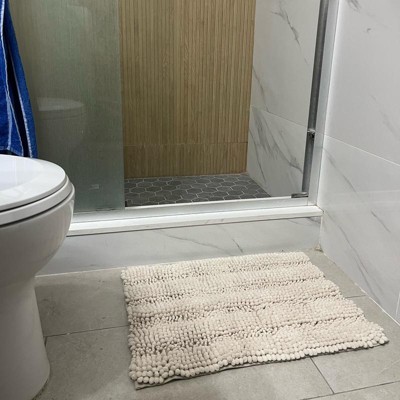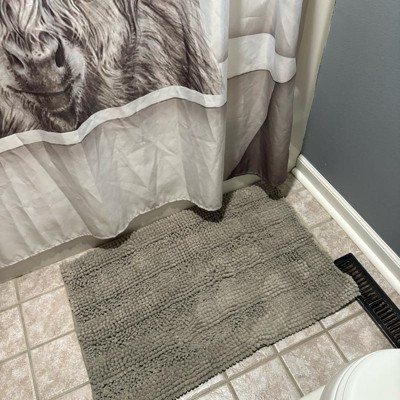 We’ve been using this bath mat for a few weeks and it’s been a nice addition to our shower. The rug is soft and even a bit spongy. It’s absorbent and hasn’t gotten a moldy smell of any kind. I was skeptical of it staying in place or sliding around too much because the bottom doesn’t have a rubber grippy piece like I’m used to seeing. The bottom is just a little tacky but it does a good job of staying put and not slipping. I feel secure when I step out of the shower and my floor stays dry. Overall, it’s a fresh and modern look on something that’s usually an afterthought.