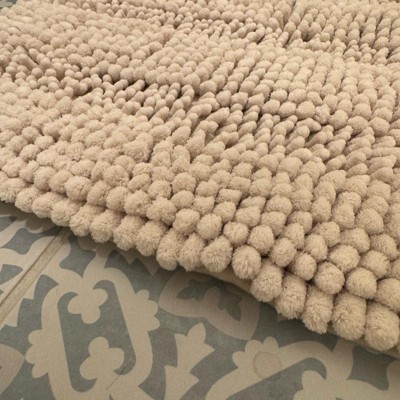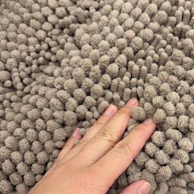 Rug is made of a chenille microfiber and is a shaggy bath mat. It is absorbent, plush and machine washable which is a must plus it’s an anti-slip pad. It’s relatively inexpensive compared to premium brands. The rug feels cozy under your foot after getting out of the shower. It’s apperance is appealing. The only thing I wish is that it had a little pad underneath the bath mat.