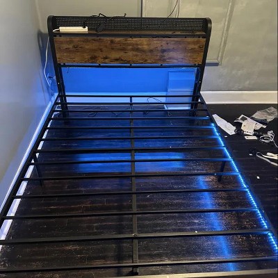 Special Feature : Industrial Storage Headboard with Charging Station, Smart RGB LED Light, USB Port, Under Bed 2 storage drawersIndustrial