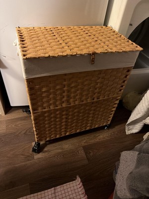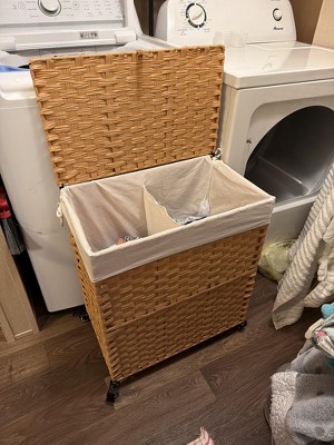 Greenstell Laundry Basket with Lid, Two Removable Inner Lining Bags, Two-compartment Garment Storage Basket, Grey