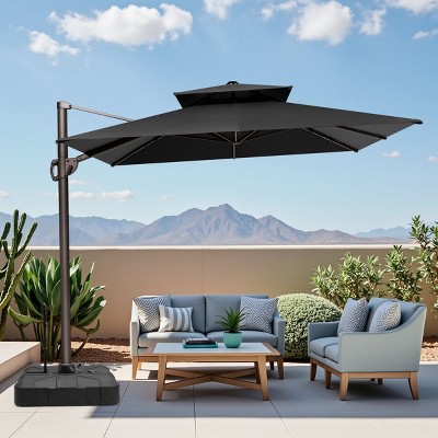 Crestlive Products 11Ft Outdoor LED Solar Lights Double Top Patio Cantilever Offset Umbrella With 350lbs Wheel+Rod Base Black