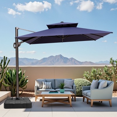 Crestlive Products 2-Tier Top Patio Cantilever Offset Umbrella 10Ft Square Canopy 360° Base Optional
