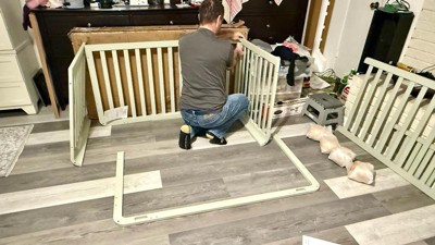 [This review was collected as part of a promotion.] Baby assembling he new crib! He’s so excited! Grateful for this huge blessing! Once assembled, the color matched exactly with his theme. He gets to slowly grow into it. Very durable and all wood. Soft edges and safe for baby.