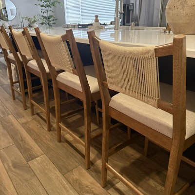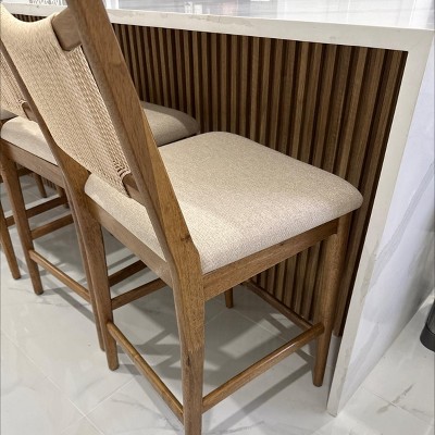 Christopher Knight Home Natalie Modern Rubberwood Upholstered Counter Stools with Woven Rope Backrest (Set of 4), Charcoal/Walnut