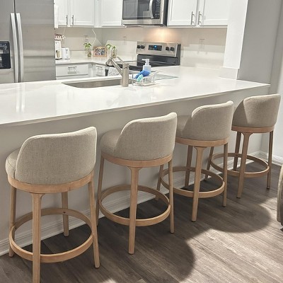 Christopher Knight Home Tadashi Modern Rubberwood Upholstered Bar Stools (Set of 4), Walnut/Beige