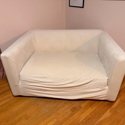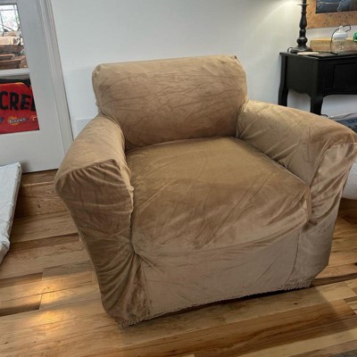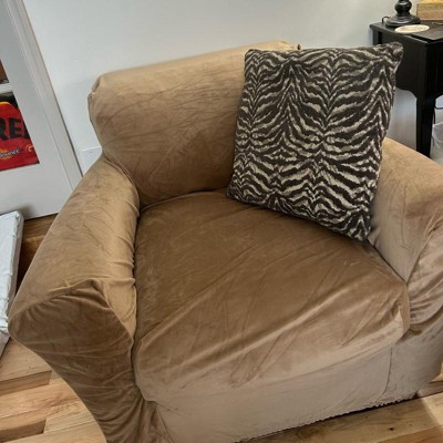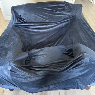 I chose to purchase this stretch velvet cover for a chair that I have in my bedroom. The cover has tags labeled “back”, so that you will know where the back of the cover is placed. This helps to place it on the back of the chair first and then to pull over the front of the chair (or couch). It has thick elastic on the bottom to help keep it on the chair. It fits my chair perfectly! It will most likely look baggy if you don’t have a chair that is similar to the chair in the picture. (My chair is from a large Swedish store). The color of the cover is vibrant and the fabric is soft. I’m not sure how durable it is as it is new. I like that it is affordable if I decide to switch up colors on my furniture.