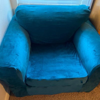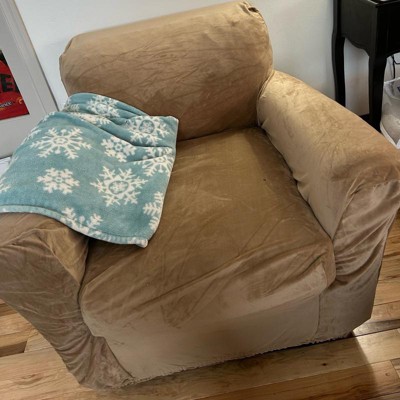 So my husband has this antique arm chair that was his grandfather’s and although it has been reupholstered, it is still pretty loud and makes a bold statement. Not only that but our dog recently decided to use both the arm and bottom portion of the chair as a chew toy! This cover is a fabulous and much cheaper option to give this chair a makeover! Because this chair doesn’t have the typical fullness in the arm rest portions it isn’t as snug as I thought it would be but that is perfectly fine with me as it hides the damages and the bold color and is super soft. I absolutely love that this cover is machine washable since our dog has now decided this is her spot to spend most of her time in now.