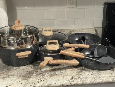 SODAY 12pcs Pots and Pans Set Non Stick Kitchen Cookware Sets Induction Cookware Nonstick Granite Cooking Set with Frying Pans, Saucepans.