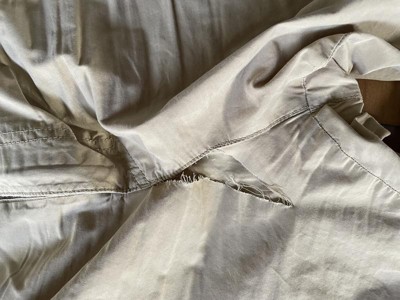 I bought these at the end of last year, I wore them twice, this year I wore them another two times and they split down the seam south of the zipper. I am very unhappy about this, your clothing and jackets are usually so well made.