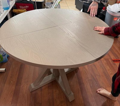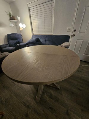 [This review was collected as part of a promotion.] I absolutely love this Rome + Oak Spier 40” pedestal dining table! The distressed beige finish gives it a beautiful modern farmhouse look that feels warm and timeless. The pedestal base is very sturdy and doesn’t wobble at all, which I really appreciate. It’s the perfect size for small spaces—great for everyday meals, coffee, or even decorating with flowers and candles. The quality feels solid and well-made, and it was easy to assemble. This table instantly elevated my dining area and blends effortlessly with neutral or farmhouse-style decor. Highly recommend if you’re looking for a stylish yet functional dining table!