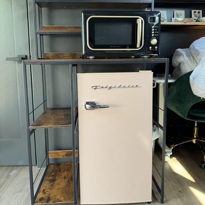 Mini Fridge Stand With Storage Shelves, Space Saving Mini Fridge Cabinet, Adjustable Left/Right Organizer With Power Outlet