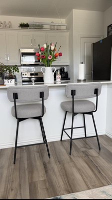 I recently purchased the Giselle Swivel Counter Height Stool (Set of 2) from Simpli Home, and I am happy with my decision! These stools bring a perfect blend of contemporary style and functionality to our kitchen. The light grey linen style fabric and sleek black metal frame give them a simple, elegant look that complements my modern decor beautifully. The 360-degree swivel and cushioned seat and back make them incredibly comfortable for casual meals or entertaining guests. One of the standout features is Simpli Home’s commitment to sustainability with no plastic or thermo plastic. Assembly was a breeze, simple instructions and all necessary tools were included, so I had both stools set up in under 30 minutes. Overall, these stools are a fantastic addition to my home, offering style, comfort, and sustainability at an affordable price. I would highly recommend them to anyone looking to elevate their kitchen or bar area.