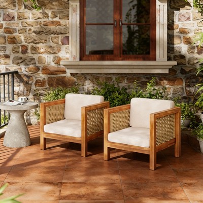 Patio Accent Chair Barrel Chair Outdoor Club Chair Curved Armchair Patio Seat with Water-Resistant Cushion & All-Weather Acacia Wood Frame -ModernLuxe