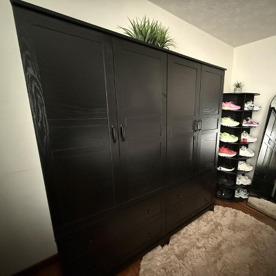 Armoire Wardrobe Closet with 2 Drawers,72" Wooden Tall Clothing Wardrobe Cabinet with Hanging Rod, Armoire with Doors Adjustable Shelves for Bedroom