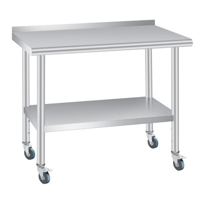 with Adjustable Undershelf: Since the stainless steel work table's lower shelf is flexible, you can raise or lower it to accommodate the size of the items you need to store. The larger storage space is favorable