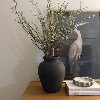 Decorative Terracotta Bud Vase for Living Room Decor - Stylish Home Decor Accent for Bedroom, Office Spaces, or Table Centerpiece - 11", Black