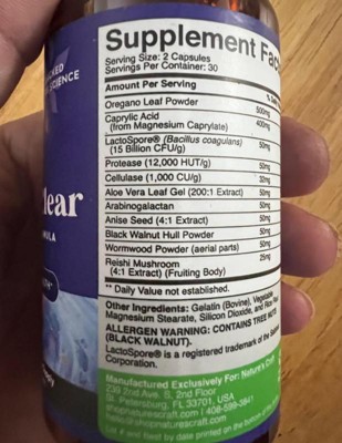 Candi-Clear Capsule for Women, Body Cleanse & Gut Detox Supplement with Caprylic Acid Black Walnut Wormwood and Oregano, Nature's Craft, 60ct