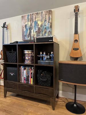 Pearson SOLID HARDWOOD 43 inch x 42 inch Mid Century Modern Low 6 Cube Storage with Drawers in Walnut Brown