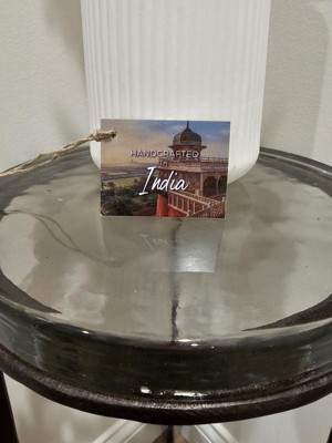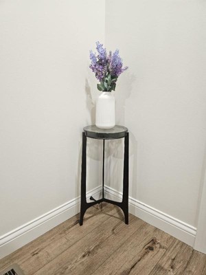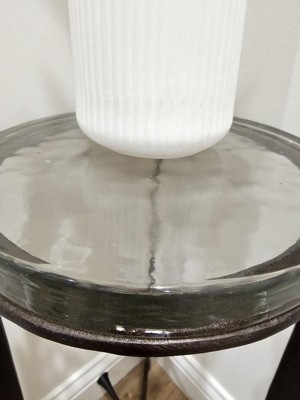 Rustic End Table, Side Table, or Small Night Stand for Room Decor - Round Metal Bedside Table with Glass Top for Small Spaces - 22" Bronze & Copper