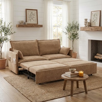 MooxvMoo 105" Modular Sectional Sofa with Throw Pillow&Deep Seat,Comfy Corduroy L Shaped Couch with Chaise for Living Room, No Assembly Required,Camel