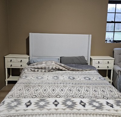 Dyonery Queen Upholstered Platform Bed Frame with 51.2" Tall Wingback Headboard¨CSolid Wood Legs, No Box Spring Needed, Beige Linen¨ Modern Style