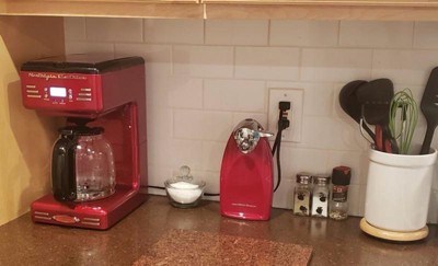 [This review was collected as part of a promotion.] I am absolutely excited about this coffee machine, especially the color. It matches my kitchen setup and my mixer. I'm glad that it is a one push button machine not complicated at all. Can't hear it at all which is nice and I hope it lasts a very long time. I really didn't have to assemble it which is awesome. The coffee pot is a decent size and we'll get a few cups out of it. I love the size. It's perfect