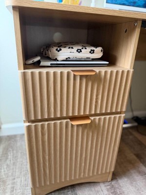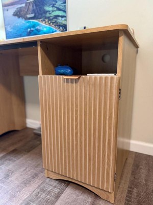 [This review was collected as part of a promotion.] I absolutely love this desk! It’s a beautiful natural wood color and goes with any home decor you can imagine. I love that the door and drawers have a retro modern look to them. They also have a bunch of storage space! It fits nicely along my half wall. I definitely recommend this desk!