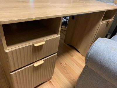 Bestier 59"Modern Executive Desk with Storage,Wood Home Office Desk with 2 Drawers & 3 Cabinet,Fluted Writing Desk for Study & Living Room,Natural Oak