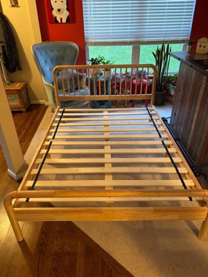 [This review was collected as part of a promotion.] I think for the price, this bed is great! You can definitely tell where they skimped for savings (slats are totally raw wood, the middle beam only connects to the slats not the actual bed frame) however those things are only noticeable when you’re building the bed. Which was also very easy to do. I did it alone and didn’t even need to ask my husband for help while he watched our son. Would definitely recommend.