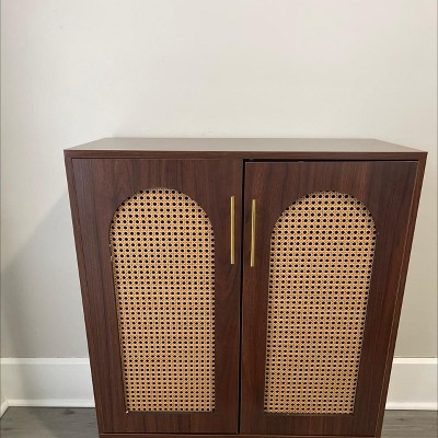 • HANDMADE RATTAN DOORS: The accent cabinet combines MDF with solid wood legs and features a handmade natural rattan weave. Crafted with high-quality natural materials, the intricately woven doors enhance the cabinet's texture and adds a touch of luxurious elegance, effortlessly elevating any room it is placed in
