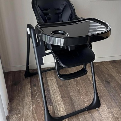 This high chair is very easy to install. It is light to move. Wheels are stable when locked. Dark color is easy to clean and keep.