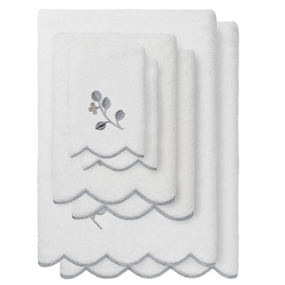 Create a mood of charming fantasy in your bath with the BRITNEY Scallop Embellished Towel Collection. These towels feature lively applique embroidered butterfly motifs with sparkling accents and scalloped embroidered bottom edge. Cloud soft and super absorbent, these 100% premium Turkish cotton towels are luxurious and durable. This collection is available in 5 lovely colors: white/beige, white/green, white/blue, white/pink, and white/gray. The BRITNEY Scallop Towel Collection brings a vibrant spirit and richness to your bath decor and makes a great gift!