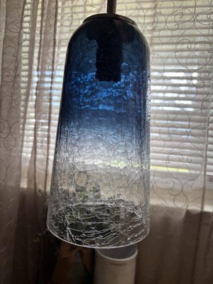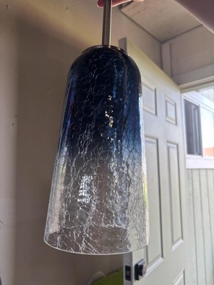 [This review was collected as part of a promotion.] I am absolutely in love with this beautiful pendant light. From the blue gradient color to the shattered glass look it just makes any space feel warm and comfy! Unfortunately, for my review, the renovations were not done in the room that I am converting to an additional dining space but I still set everything up so I could see how the finish product would look and how low it hangs and it’s gonna perfect for my space! The best way I can describe this is just cozy! It’s perfect for the dining area that I’m building or would also be beautiful in a reading nook. It comes with 3 separate poles so if you have higher ceilings, it’s the perfect length but if you have lower ceilings, you can easily remove one of these before the final installation to raise it up a little bit!