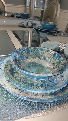 12 Piece Melamine Dinnerware Set Service for 4, Teal Heavyweight Unbreakable Plates and Bowls,Durable Rustic Dishes & Dishwasher Safe