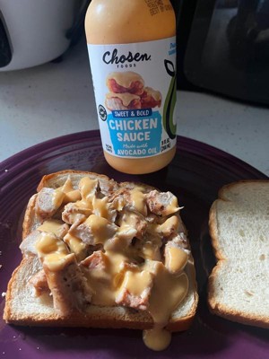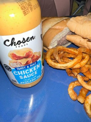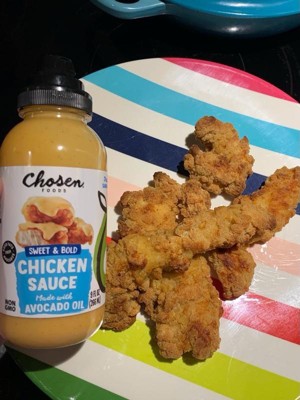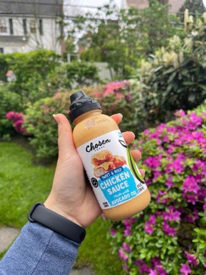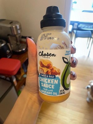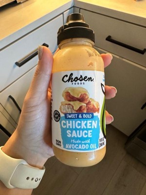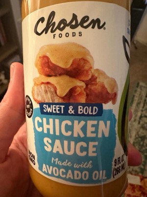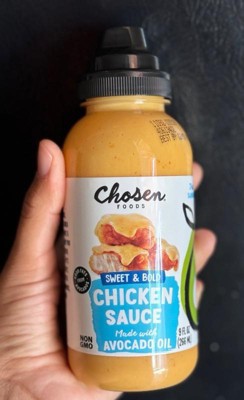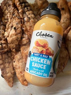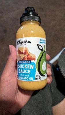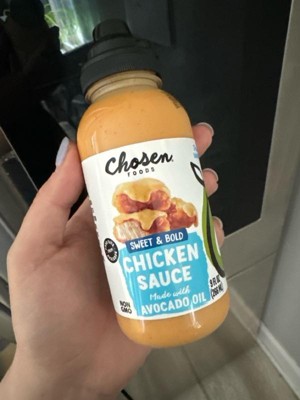 [This review was collected as part of a promotion.] Chosen Chicken Sauce is sweet and bold. It’s made with avocado oil and is 80 calories per serving. It’s creamy and thinner than expected. This sauce comes in a handy squeeze bottle with a decent size opening. This sauce is great on veggies too!