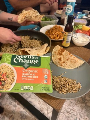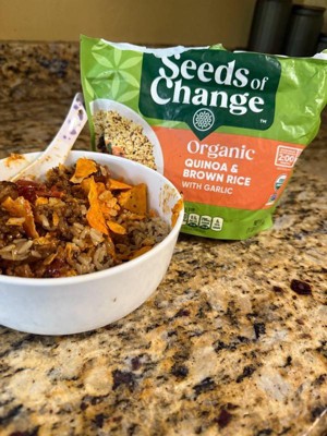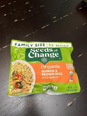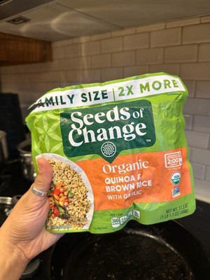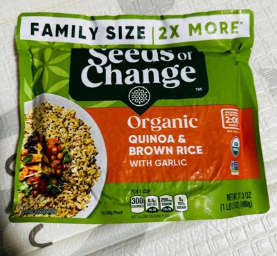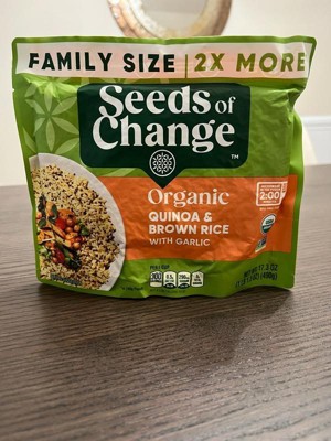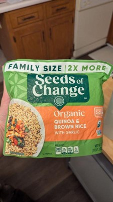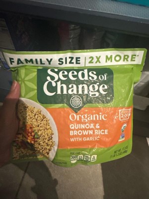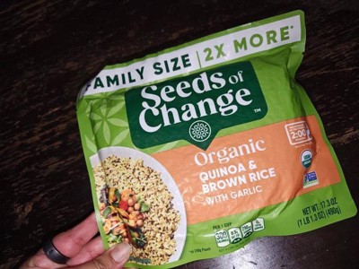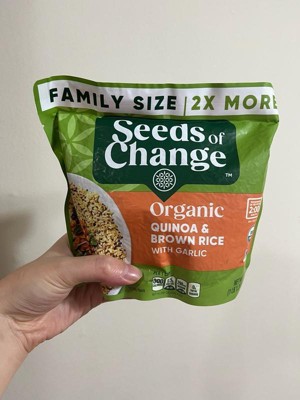 [This review was collected as part of a promotion.] Tried this Seeds of Change quinoa & brown rice tonight and it was actually really good. I just heated it up, mixed it in a pan, and used it for wraps with chicken and veggies. The garlic flavor is nice — not too strong — and the texture came out perfect, not sticky or mushy like other microwave rices. It tastes clean and fresh, like something you actually cooked. Only thing is the pack looks big but it’s really just enough for 2 person if you’re hungry. Still, super easy and way better than I expected. Definitely keeping a few of these in my kitchen for quick meals.