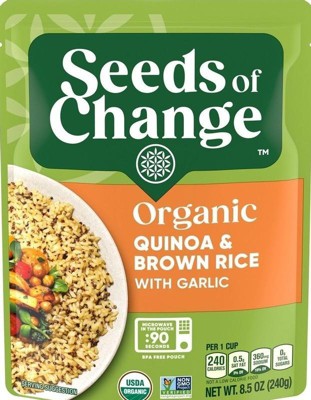 [This review was collected as part of a promotion.] Seeds of Change Quinoa & Brown Rice with Garlic is the perfect blend of convenience, flavor, and wholesome ingredients. The fluffy quinoa and nutty brown rice are cooked to perfection, while the hint of garlic adds a savory depth that tastes homemade. Ready in just 90 seconds, it’s a nutritious side or base for any meal—whether paired with grilled veggies, chicken, or enjoyed on its own. Organic, delicious, and satisfying, it’s a pantry staple for quick, healthy eating