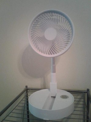 [This review was collected as part of a promotion.] Ive been using this since i got it and must say, im impressed. For such a small fan this thing puts out alot of air. Its easy to charge, and easy to store. It folds up so u can store it in small spaces when not in use, or extend it out and set it up on the floor.