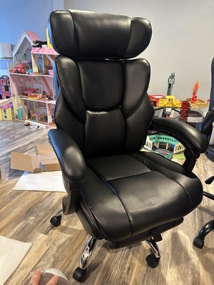 Ora Maison High Back Office Chair with Footrest – Reclining Leather Desk Chair for Naps & Work, Black