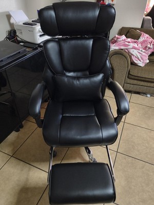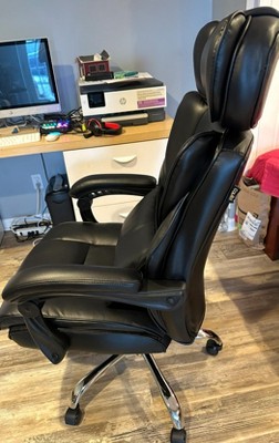 Comfortable, supportive chair that feels great for long work sessions. The high back and cushioning make it easy to sit for hours without feeling sore, and the recline with the pull-out footrest is a nice bonus for quick breaks. It rolls smoothly and feels stable. The only downside is it’s a bit bulky compared to a standard desk chair, so it takes up more space. Overall, it’s worth it if you want an office chair that’s more on the comfy side than stiff and upright.